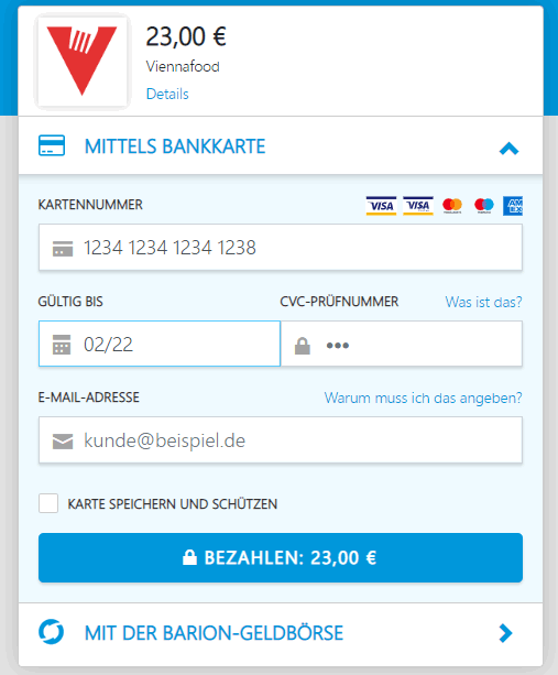 Nach erfolgreicher Durchführung der Zahlung, werden Sie auf die Seite von ViennaFood zurückgeleitet, wo Sie über den Status der Transaktion informiert werden.
